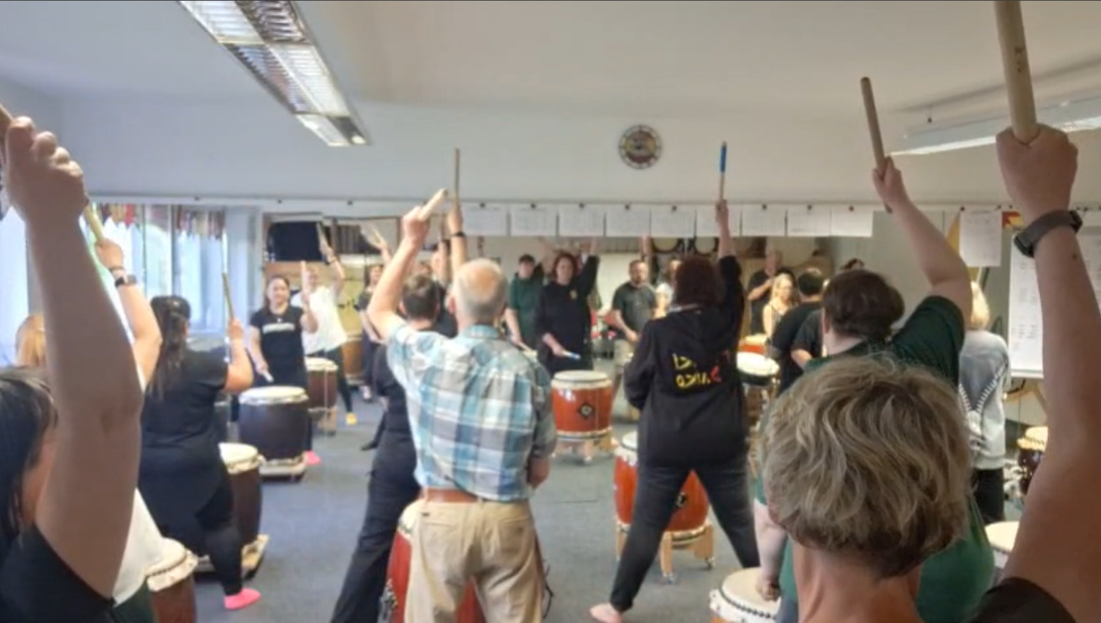 Jeden Dienstag trifft sich unsere Auftrittsgruppe zum Proben: Wir vertiefen bekannte Stücke, lernen neue Rhythmen und bereiten uns auf kommende Shows vor. Mit Energie, Präzision und Teamgeist bringen wir Taiko auf die Bühne – kraftvoll und mitreißend.